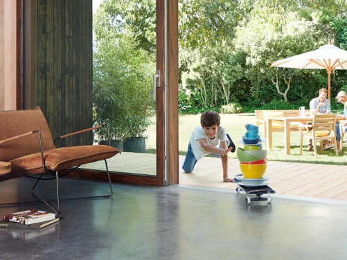 Dobrej jakości systemy przesuwne (np. HS lub smart-slide) działają lekko i bez szarpnięć. Dziecko nie musi używać siły do przesunięcia drzwi, co zmniejsza ryzyko przypadkowych urazów.